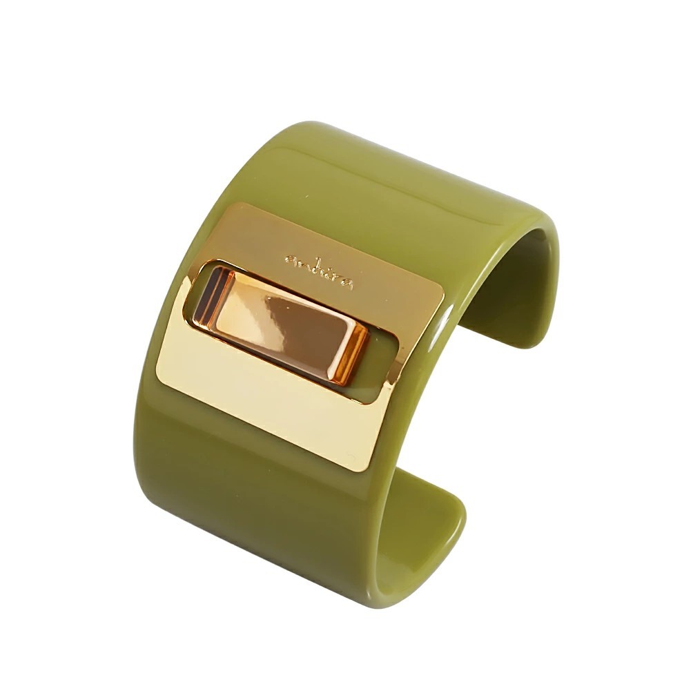 イタリア人デザイナーならではの大胆なフォルムと色使いが魅力のアクセサリー。日本の文化の心と静寂の美の調和をコンセプトに洗練されたデザインと素材で作られています。上品な大人っぽさを演出してくれるバングルは、日常に華やかさと個性をプラスしてくれます。洗練されたデザインのバングルは、プレゼントにはもちろん、自分へのご褒美にもおすすめのアクセサリーです。2012年にレッジョカラブリアで誕生したANTURAは、大ぶりでシンプルな形状のアイテムが多く、リングやネックレス、ブレスレット、イヤリングなどを単品でもセットでも楽しめるデザインになっています。日常のコーディネートにさりげない個性や華やかさを添えるアイテムとして人気のバングルは毎日のオシャレアイテムにぴったりです!ブランドロゴが入った真鍮プレートと透明感のある樹脂が、シンプルながらも高級感を持たせたデザインです。