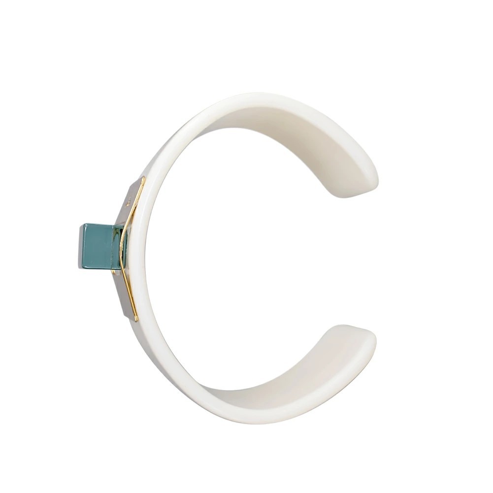 イタリア人デザイナーならではの大胆なフォルムと色使いが魅力のアクセサリー。日本の文化の心と静寂の美の調和をコンセプトに洗練されたデザインと素材で作られています。上品な大人っぽさを演出してくれるバングルは、日常に華やかさと個性をプラスしてくれます。洗練されたデザインのバングルは、プレゼントにはもちろん、自分へのご褒美にもおすすめのアクセサリーです。2012年にレッジョカラブリアで誕生したANTURAは、大ぶりでシンプルな形状のアイテムが多く、リングやネックレス、ブレスレット、イヤリングなどを単品でもセットでも楽しめるデザインになっています。日常のコーディネートにさりげない個性や華やかさを添えるアイテムとして人気のバングルは毎日のオシャレアイテムにぴったりです!ブランドロゴが入った真鍮プレートと透明感のある樹脂が、シンプルながらも高級感を持たせたデザインです。