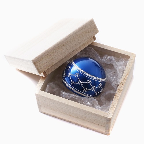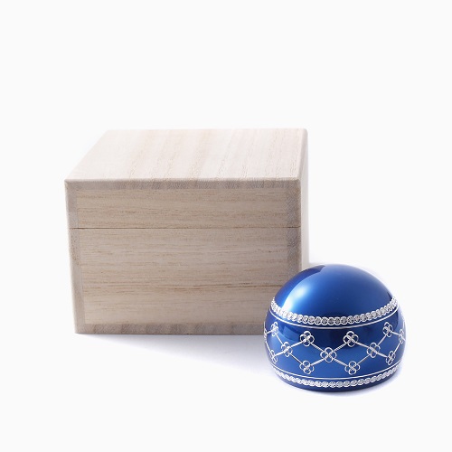 高級桐箱付き ダイヤモンドカット入り アルマイト 骨壺 リアン(LIEN) ペール・ブルー 7777-TS21