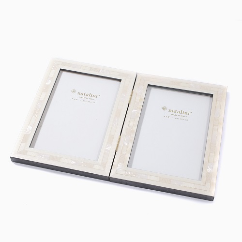 イタリア製 手作り 天然木製 ツイン 写真立て フォトフレーム ミニ (ダブル ホワイト白蝶貝) 7782-NL21