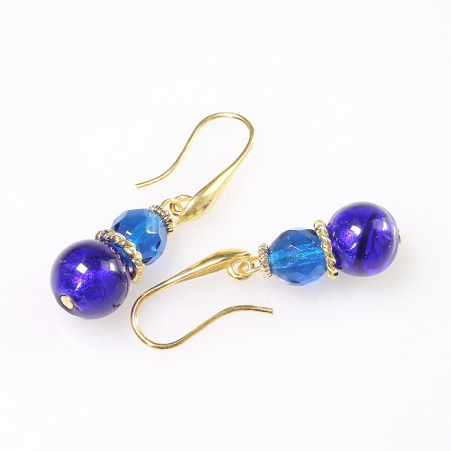 イタリアの最先端ファッションの都「ミラノ」。そこで活躍するジュエリーデザイナーのアヴェ・テッタマンティ。ベニスの熟練職人によるベネチアンガラスを使い、洗練されたデザインセンスとイタリア人ならではの色使いを持ち合わせ、イタリアはもちろん世界中の大人の女性たちを魅了しています。彼女の作品は決して派手すぎずそれでいて絶対的な存在感があり、ブルー系ガラスとミッレカットを施したムラーノガラスを組み上げた、その色合いのコントラストが美しいデザインセンスは、イタリア人デザイナーならではのハイセンスです。落ち着いた色合いのベネチアンピアスは上品に自己主張をする大人のジュエリーと言えます。オシャレでハイセンスなデザインは上品にコーディネートを装ってくれます。