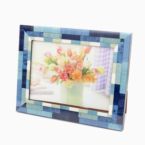 イタリア製 ベルガモ 天然素材 木製 フォトフレーム(ブルー) 7870-NL20