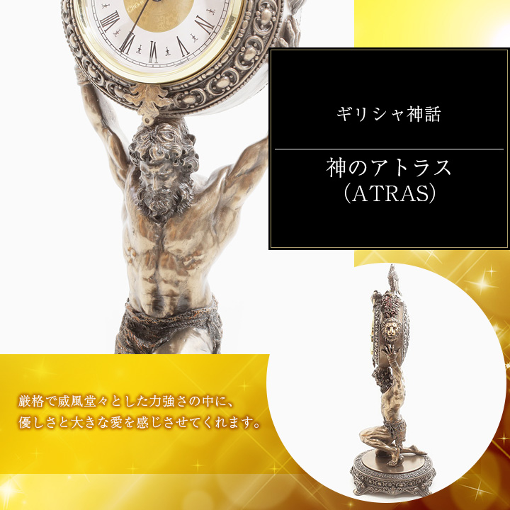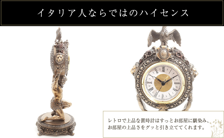 珍しい置き時計日本ではなかなか見かけない、ハイセンスなデザインのアトラス置き時計。プレゼントにも◎ |