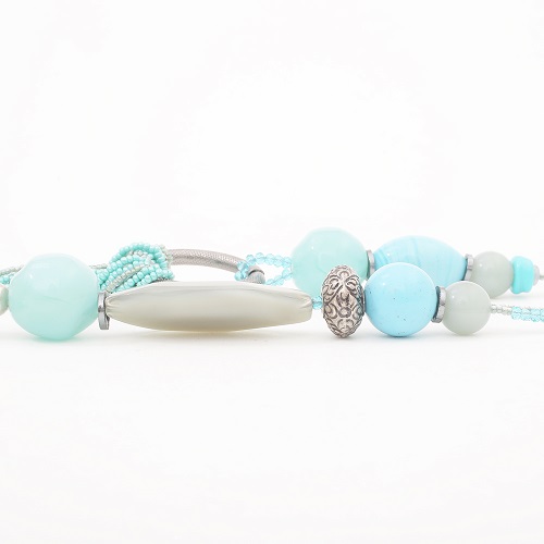 イタリアの最先端ファッションの都「ミラノ」そこで活躍するジュエリーデザイナーのアヴェ・テッタマンティ。ベニスの熟練職人によるベネチアンガラスを使った洗練されたデザインセンス、イタリア人ならではの色合わせは世界の女性と虜にする魅力あふれるネックレスです。ブルーカラーを基調とした華やか色合いで女性らしさをぐっと引き出すデザイン見た目から感じる派手さはなく、違和感なくお使い頂けます。72cmゆとりあるサイズ感のネックレスは、ワンピースやスカートのかわいいファッションにはもちろんカジュアルな服装にも合わせやすい最適のアクセサリーです。職人によるハンドメイドの為、全く同じものはこの世に2つとなく自分だけの特別を味わえます。大切な人へのプレゼントや頑張った自分へのご褒美にも大変お勧めのイタリア製ベネチアンガラスネックレスです。