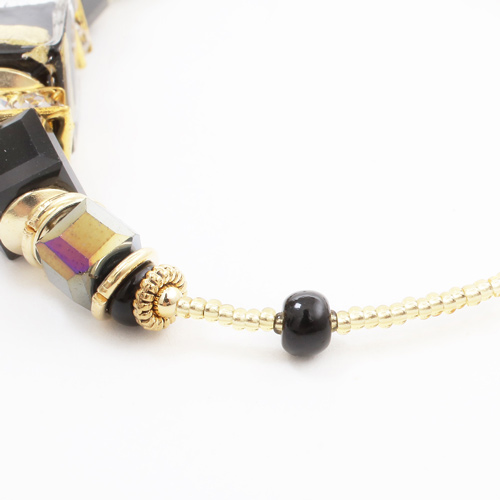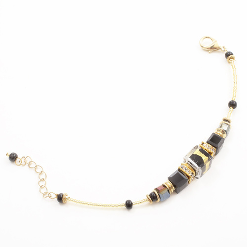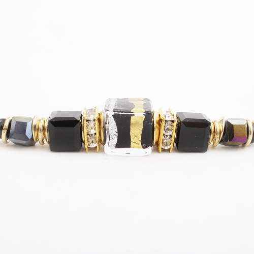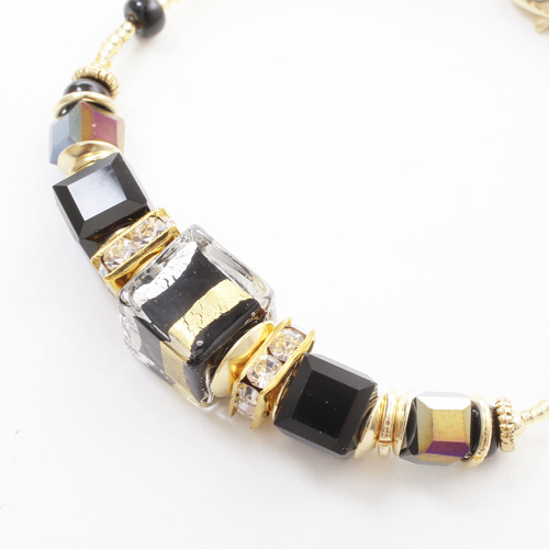 イタリア製 ベネチアンガラス ブレスレット 山吹色 ブラック ダッディ・ネロ 純金箔入り 7935-IN19