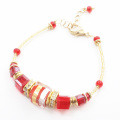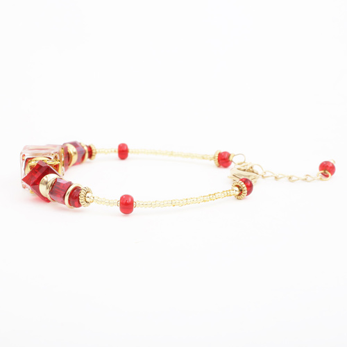 イタリア製 ベネチアンガラス ブレスレット 山吹色 ルビーレッド ダッディ・ロッソ 純金箔入り 7938-IN19