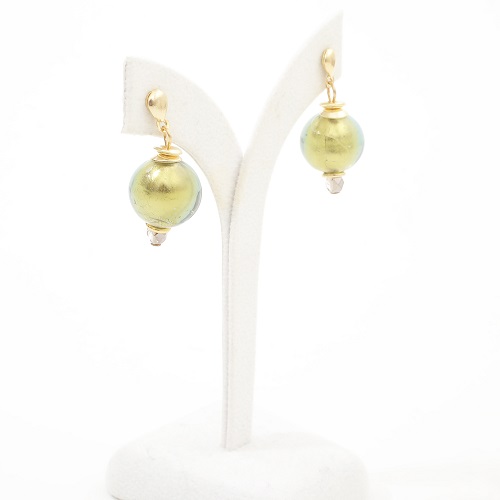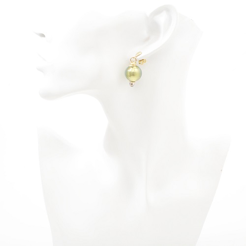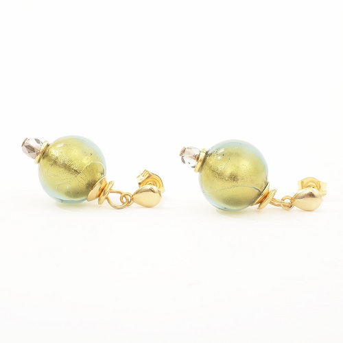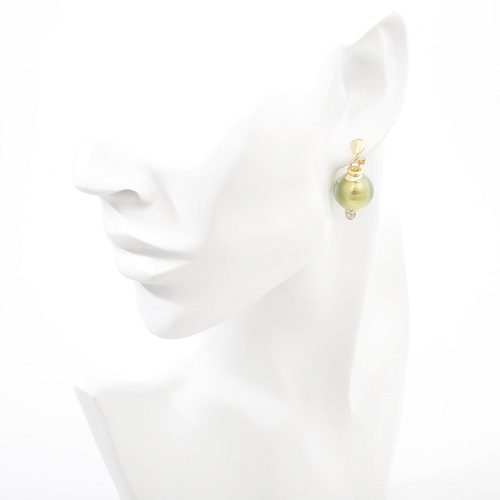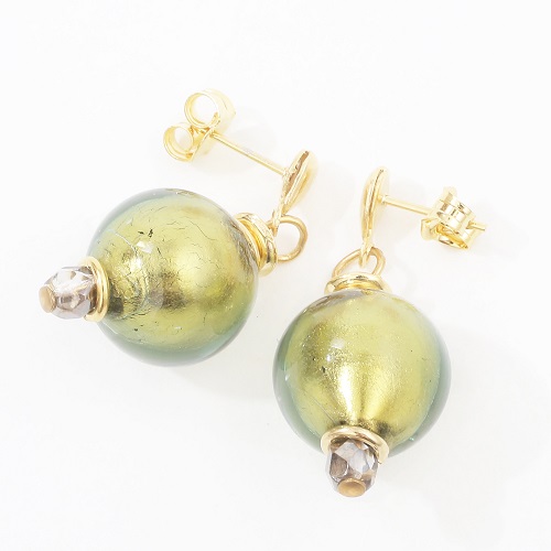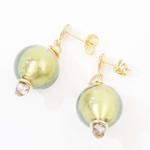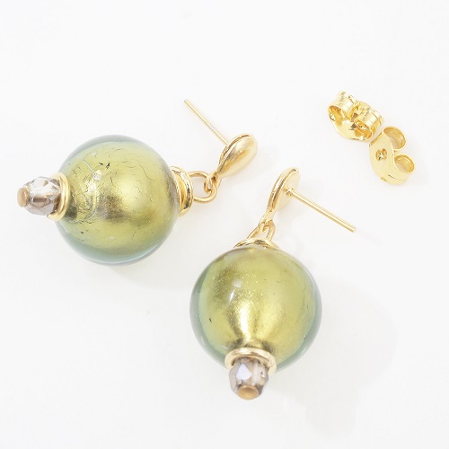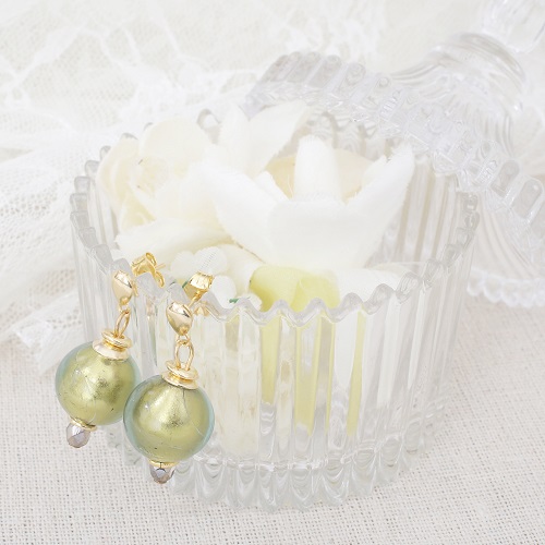 重すぎず軽すぎない程よい重量感が魅力的♪純金箔を綺麗なグレーグリーンガラスで包み込んだ優しい色合い。幅広いファッションで大活躍のイタリアンピアス。