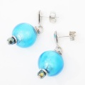 イタリア製 INES design ベネチアンガラス ピアス ブルー ガラスボール 7952-IN19