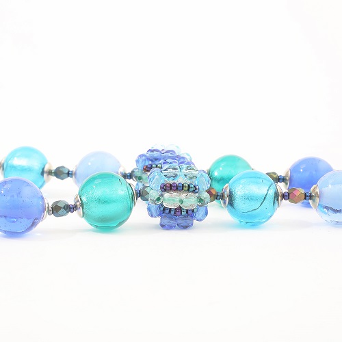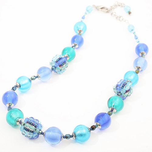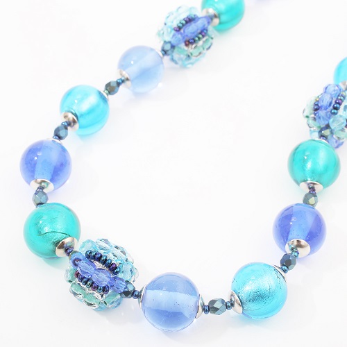 重すぎず軽すぎない程よい重量感が魅力的♪純金箔を綺麗なブルーガラスで包み込んだ優しい色合い。幅広いファッションで大活躍のイタリアンネックレス。