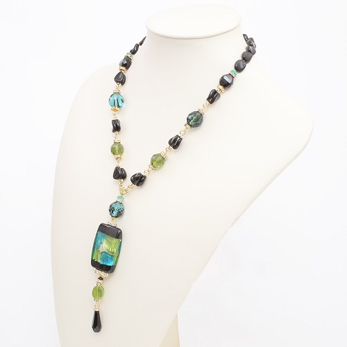 イタリア製<INES design> ベルデ・ピッローラ・ネックレス ブルーグリーン 7966-IN19