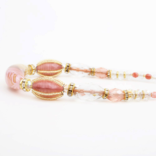 ヴェネチアンガラスで有名なイタリア・ムラーノ島、マエストロと呼ばれる熟練した職人たちが、伝統技法を用い一つ一つ丁寧に手作りしています。女性らしい可愛さの中に大人っぽさもあるピンクカラー着けてみるとその色合いから感じる派手さは少なく、上品に自己主張をする大人のジュエリー。ベネチアンガラスの中に純金箔を閉じ込たクレシェンテ・ガラスの上品さやデザインはイタリア人ならではの独特な美しさを放ち毎日のお洒落に欠かせないアイテム♪幅広いコーディネートで言使い頂ける女性らしいデザインのベネチアンネックレスは大切な人へのプレゼントや、毎日の自分へのご褒美にも大変おススメの大人ジュエリーです☆