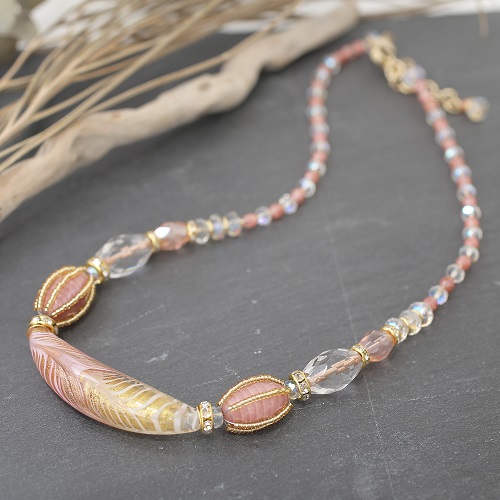 イタリア製<INES design> ロウザ・フォッシレ・ネックレス ピンク 7976-IN19