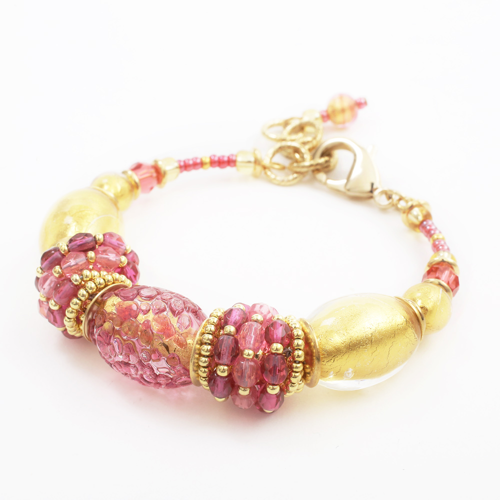 | 製品名: | イタリア製 ベネチアンガラス バングル ブレスレット 山吹色 ピンク アンティコ・ロザ 純金箔入り 7982-IN19 |
