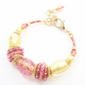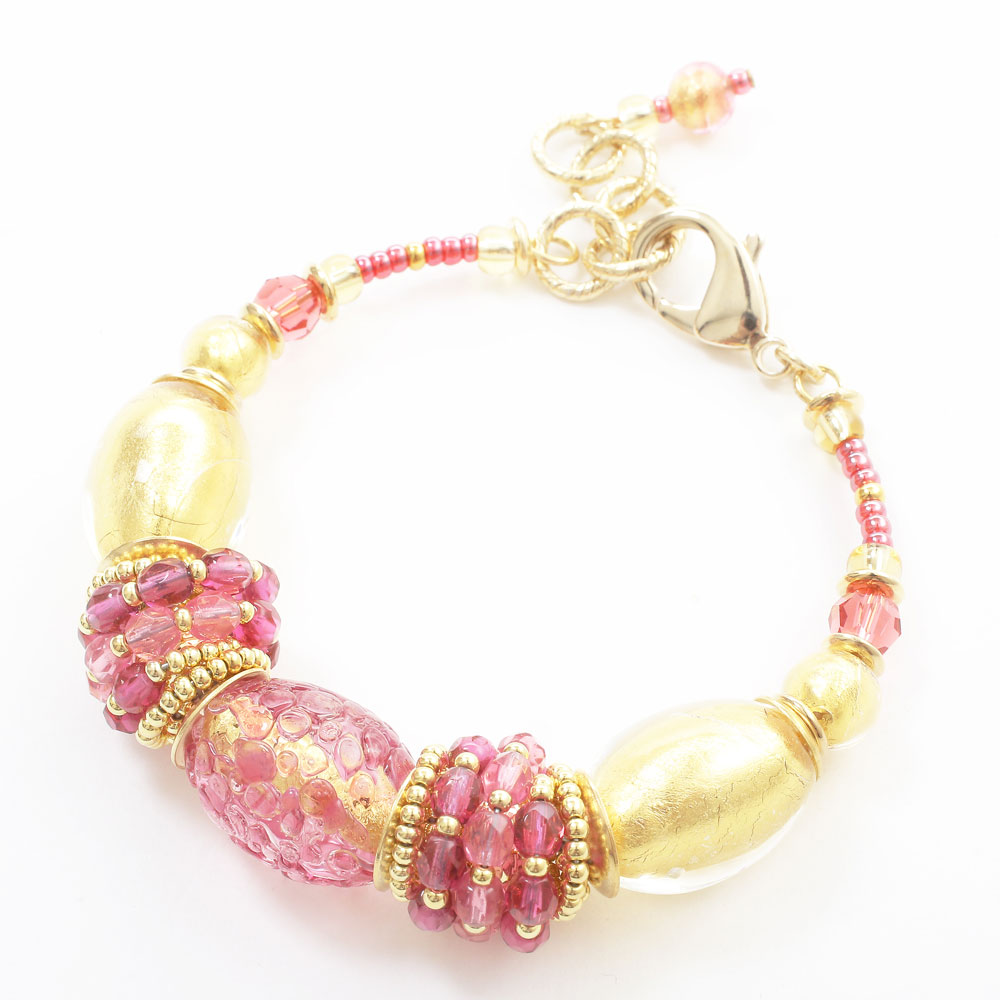 イタリア製 ベネチアンガラス バングル ブレスレット 山吹色 ピンク アンティコ・ロザ 純金箔入り 7982-IN19
