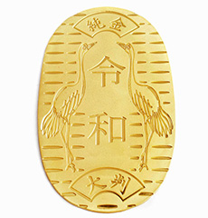 その徳力本店謹製、純金をたっぷり100g使用した大判をお楽しみください。長寿・繁栄を意味し、仲良きことの象徴である双鶴をデザインし、これから訪れる輝かしい未来の「令和」を祈願しています。令和とは万葉集巻五、梅花の歌三十二首の序文より引用されています。ご出産、新築の祝いや記念品として身内の方への贈り物としても、たいへん喜ばれる価値のある逸品です。