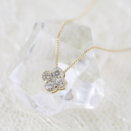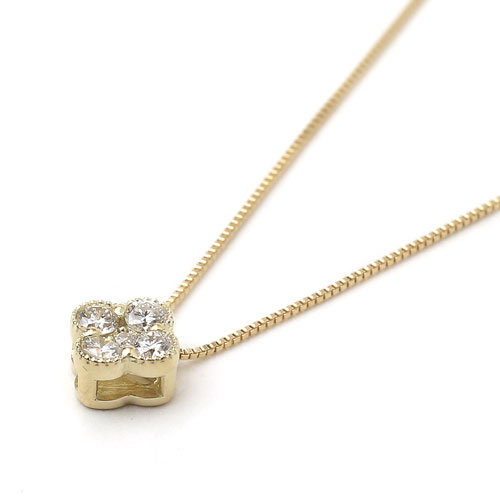 10金 K10YG イエローゴールド ネックレス ベネチアンチェーン ペンダント クローバー ダイヤモンド 8003-UK18