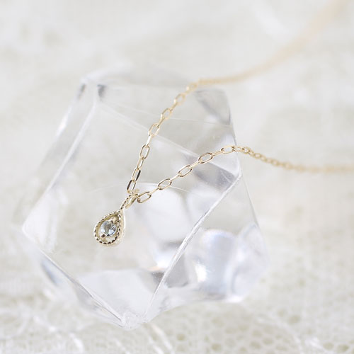 10金 K10YG イエローゴールド ネックレス アズキチェーン ペンダント ティアドロップ アクアマリン 8006-UK18
