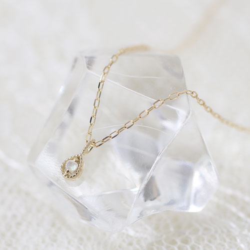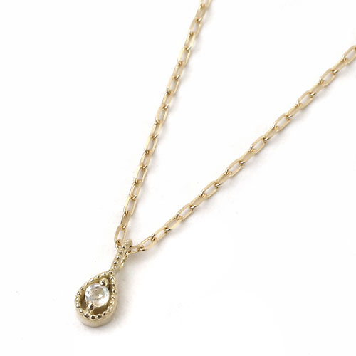 10金 K10YG イエローゴールド ネックレス アズキチェーン ペンダント ティアドロップ ムーンストーン 8009-UK18
