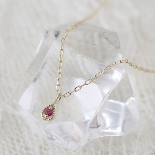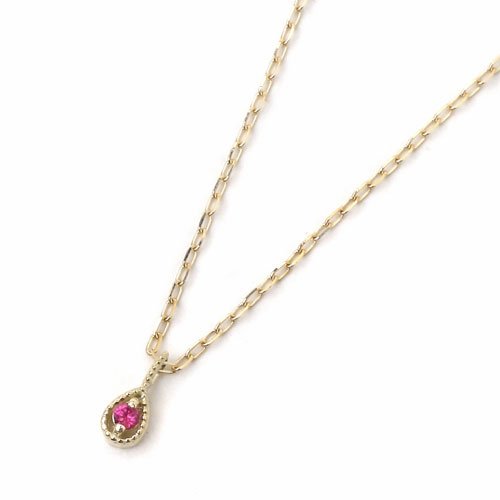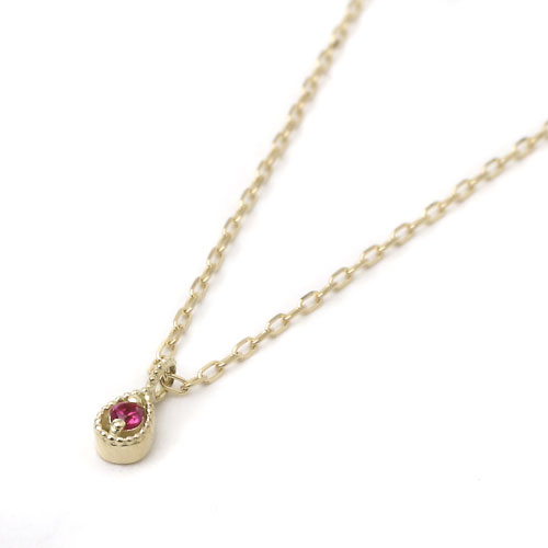 10金 K10YG イエローゴールド ネックレス アズキチェーン ペンダント ティアドロップ ルビー 8010-UK18