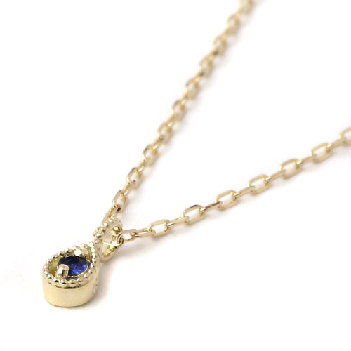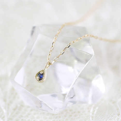 10金 K10YG イエローゴールド ネックレス アズキチェーン ペンダント ティアドロップ サファイア 8012-UK18
