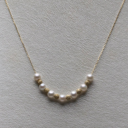 | 素材 | ●トップ/あこや真珠7個(3.7mm幅)、18金ミラクルカットボール6個(2.5mm幅) ●チェーン/18金イエローゴールド |